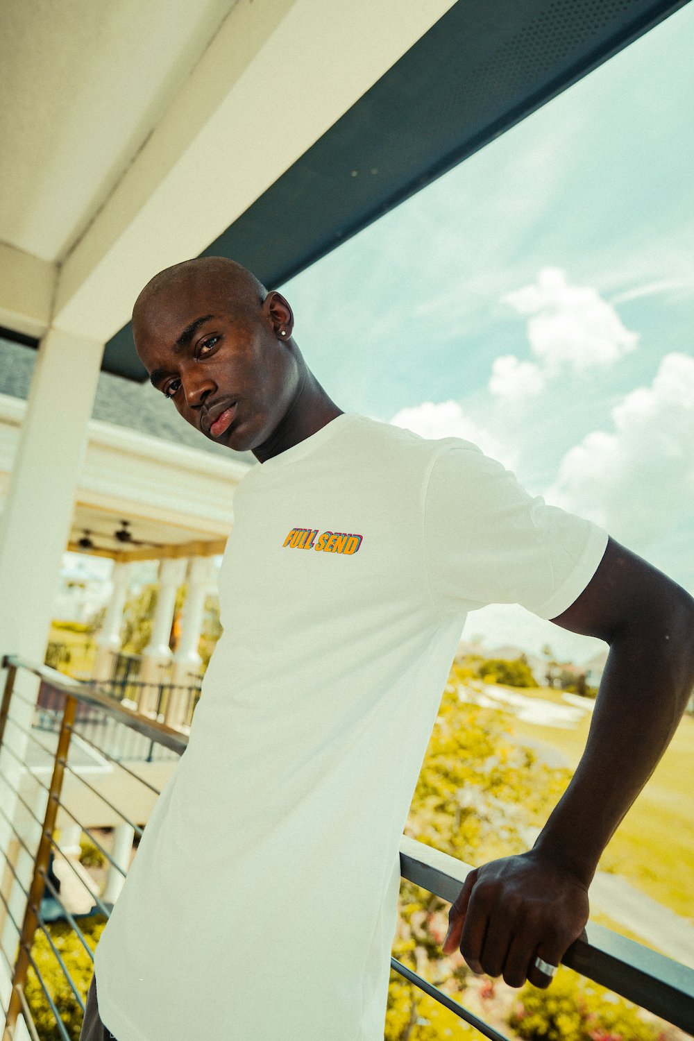 Full Send retro logo screen printed on left chest